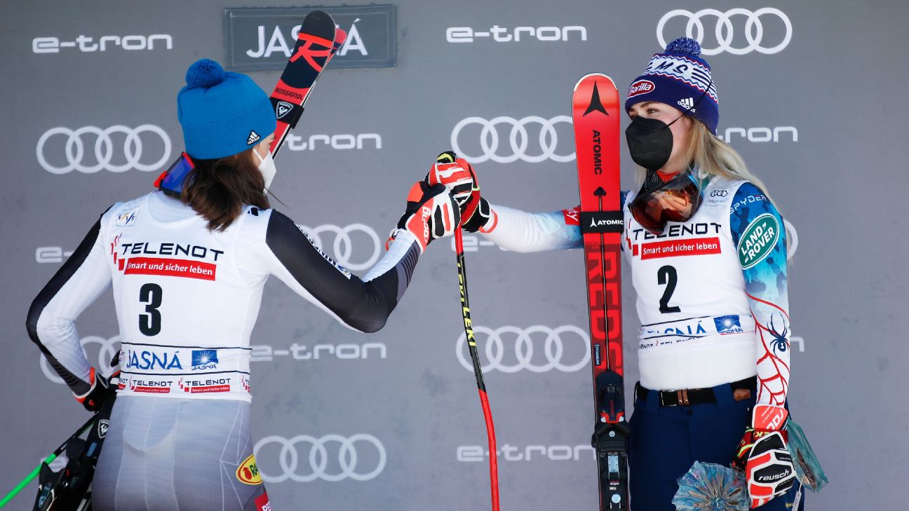 United States Mikaela Shiffrin celebrates a first place finish in a womens World Cup slalom ski race Sunday Nov. Photo by TASR Jasna March 6 TASR Slovak Alpine skier Petra Vlhova came second in a World Cup slalom event at Jasna in Slovakia on Saturday being edged by American Mikaela Shiffrin while Wendy Holdener. Two-time giant slalom world champion.